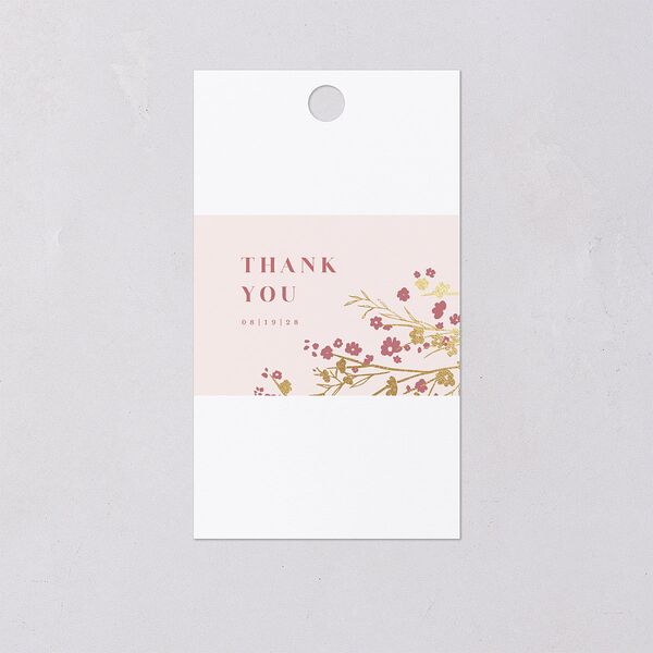 A subtle sparkle of foil appears on your favor gift tags in an elegant cherry blossom design. Your details feature on both sides of the tags in chic serif font, stylized with capitals and italics.