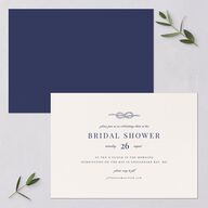 Serif typography and a touch of script on this elegant wedding shower invite are accented by a beautiful illustration of a nautical knot. The design brings to mind coastal walks and soaring lighthouses, beginning your wedding celebrations with a fresh and breezy look.