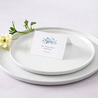 These elegant place cards feature an illustrated rose garland, interspersed with butterflies. Your loved one’s name is outlined in stately serif typography with their assigned table appearing underneath.