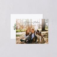 Warm your guests' hearts with these petite save the date cards featuring your favorite photo. Your names catch the eye in the top middle segment, playfully penned in a looping script above your event details. The back directs guests to your website with a helpful URL, framed from left to right by arched bouquets of beautiful flowers.