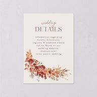 With the eclectic typography and neutral color scheme, your enclosure cards will make sure your wedding guests don't miss a thing. Your day-of details will appear on a bed of harvested leaves, with a foil finish completing the crescent-shaped design.
