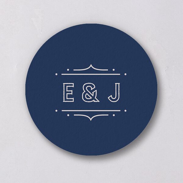 These stickers sport a bold color scheme and sleek design, adding a modern touch to your wedding stationery. Your initials appear in iconic outlined typography, matching your vibrant city theme.