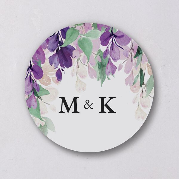 This vibrant wedding sticker displays your custom monogram beneath a romantic and delicate wisteria design.