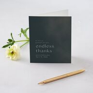 Once your festivities are happy memories, you can thank your guests with this card. Your thank you card shows your names, wedding date, and message of thanks, along with a shaded background decorated with glittering foil.