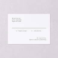 These simple wedding response cards outline your wedding details in modern lowercase sans serif lettering. Your chosen photo is displayed on the back, framed by a chic border.