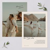 Your love, documented. Invite your guests to witness your love story unfold with these wedding invitations. Vintage hues evoke old newspaper clippings and frame your chosen portrait, which sits center-stage in a polaroid style. A slanting handwritten script slants across the bottom left corner of the photo. The design is further captioned with a lowercase serif font that lists your event details, while a second photo is displayed on the back.