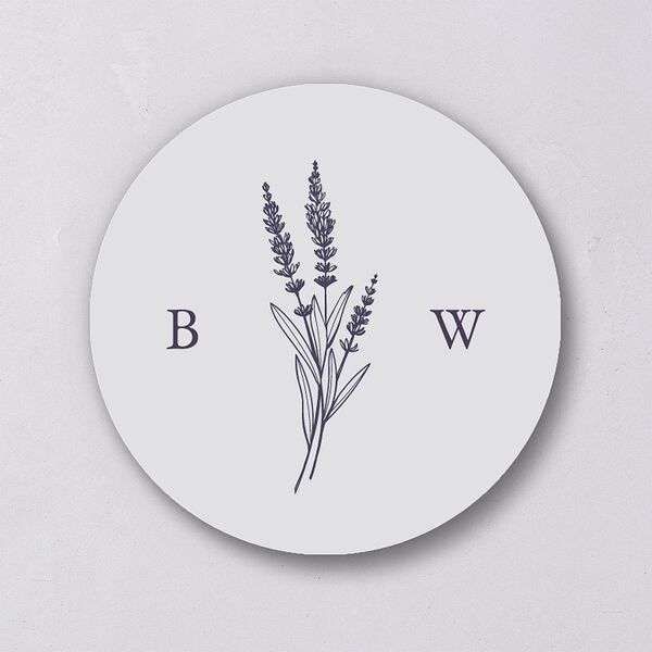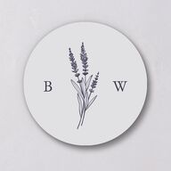 A charming lavender motif is nestled between you and your partner's initials on this vintage-inspired wedding sticker design.