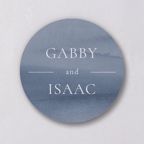 This stylish wedding sticker features your names displayed in crisp white lettering against a dreamy watercolor background.