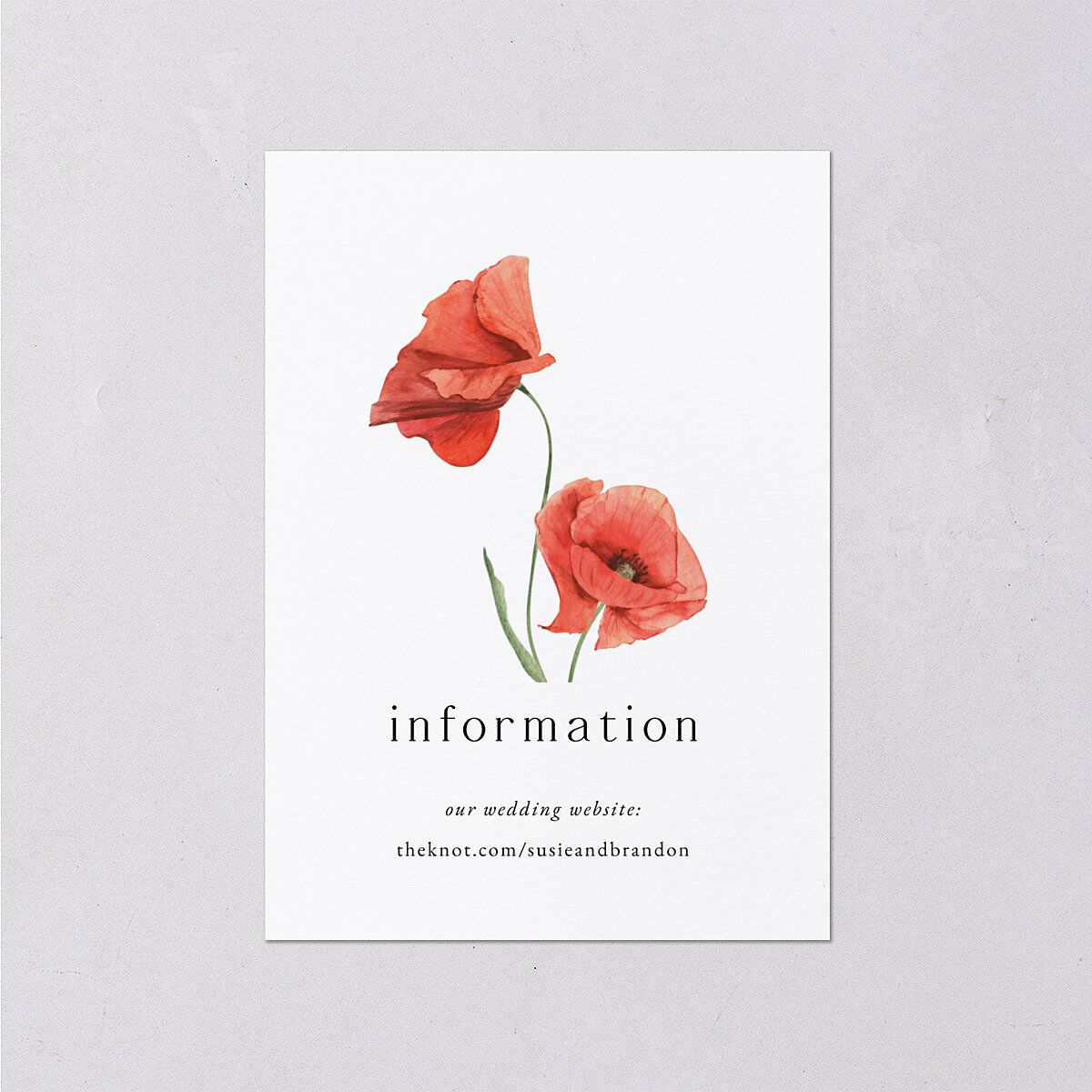 Give your wedding stationery a hint of ethereal, modern flair. The word, "Information" is presented on this enclosure card in a timeless serif font, with delicate wild poppies taking center stage in the middle of the design.