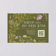 These wedding response cards feature a lively garden of wildflowers in a beautiful intricate pattern. The design is finished in stunning earthy tones with a QR code for guests to RSVP. The reverse side features your names and the important date.