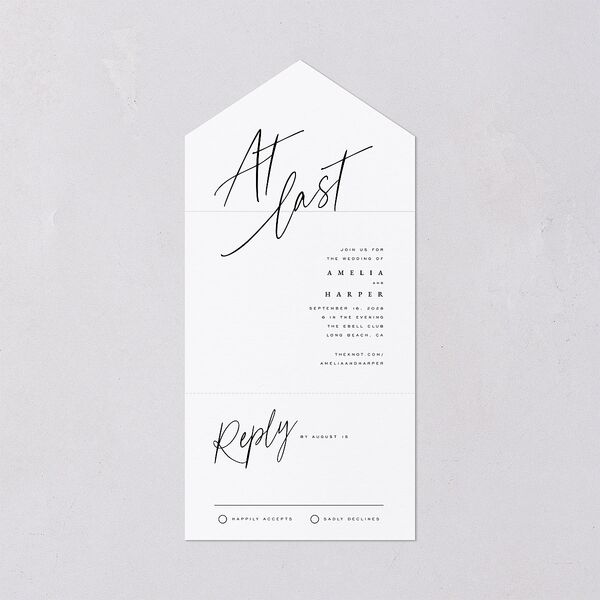 Designed to help you save, each card includes an invitation and tear-off RSVP postcard that folds up to become its own envelope with free address printing—no separate envelope needed. All you have to do is fold, seal and send. Includes three clear stickers for USPS-required easy sealing.
